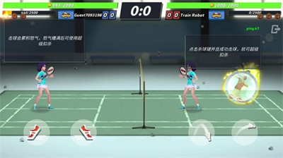 3、轻轻点击屏幕即可让主角将球拍过球网,规则与现实生活中的羽毛球赛事一样;