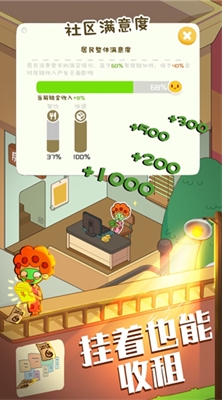 这游戏还有时间系统早出晚归(家里蹲半夜不睡觉早上才睡觉)各个时间段的场景以及租客的行动方式做比较细致。到达一定时候可以去往另外一个城市圈W。玩法较为单一,但要真的玩起来还是比较上头的。广告不是强制广告但是前期避免不了广告来获取金钱。房东模拟器游戏当中虽然对于不同的地方租客有不同的生活习惯来进行规划,但是在游戏玩法当中占比的重要没有那么大,基本每个人都是一模一样,不同的习惯对于家具应该都有不同的要求,但是游戏对于这方面还是太固定,玩家所选择的还是太少,死板玩家对于游戏的后期肯定会越来越乏味。