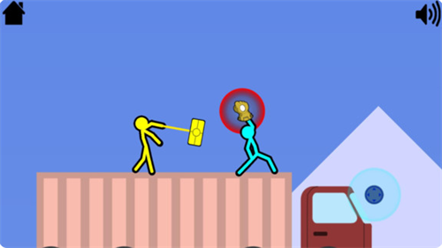 2、每个火柴人都会让战场翻天覆地。游戏中有大量的刀枪棍棒可供火柴人使用;