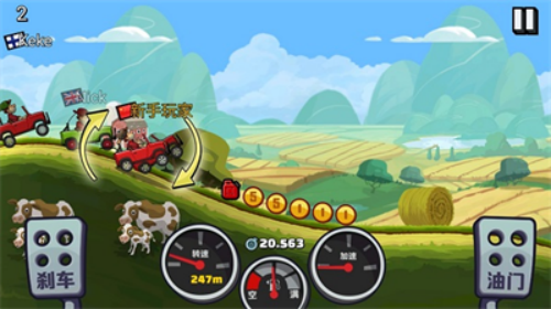 游戏操作比较简单,左边的是刹车按钮,右边的是油门按钮,在地面自然是油门加速、刹车减速。