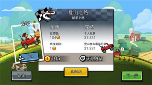 游戏中不管是购买车辆、解锁关卡、升级配件都需要大量的金币,所以游戏中尽量多收集金币吧。因为在行车的物理作用下,车速、角度,以及玩家的操作稍微的出现了问题,就会是金币收集受挫;所以切忌可以的去收集金币,否则,车毁人亡势在必出啊。