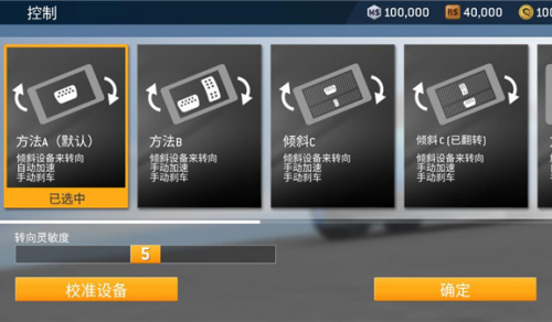 2、游戏支持2种方式来控制赛车:重力感应和屏幕控制,其中又分为7种玩家个性化的操作方式。