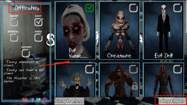 3、四档难度梯度设计,普通/困难/噩梦/Evil Nurse模式,怪物移动速度与感知范围逐级提升。