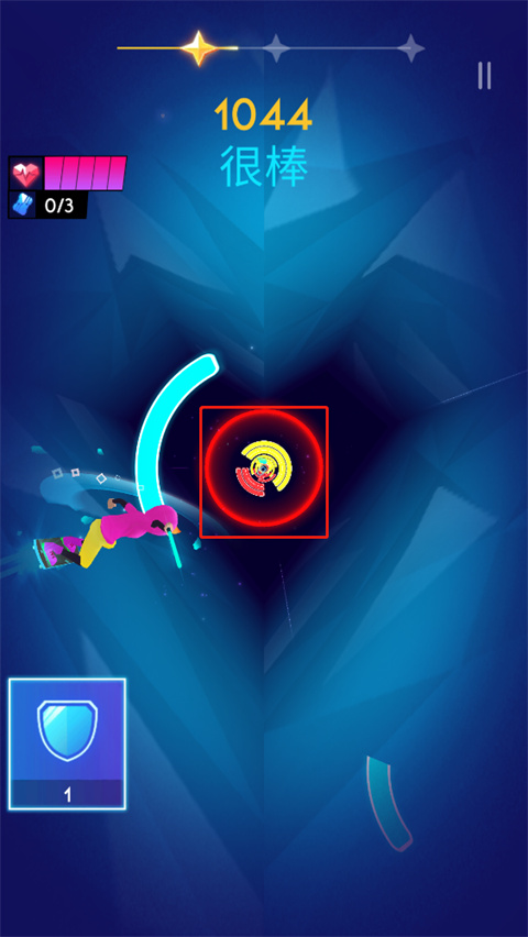 5、当玩家遇到带有颜色的光环就需要注意了,这是玩家需要击打的颜色会发生改变,击打的颜色就是光环的颜色。