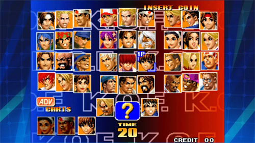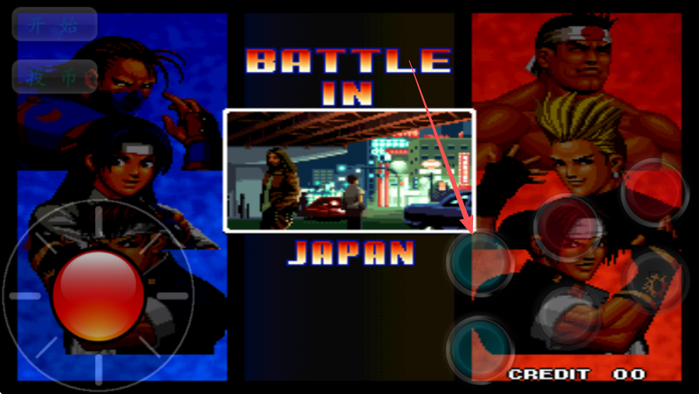 1、打开拳皇98单机版游戏,点击投币开始游戏