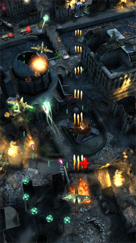 1、滑动屏幕操控战机自由转向,精准射击敌机获取宝石提升战斗资源。