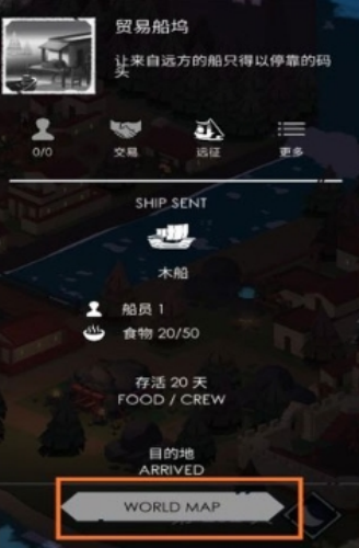 4、船出港后点击世界地图,再点击相近小岛,在此停泊等个8天左右到达,然后再进世界地图点击之前停泊的小岛。