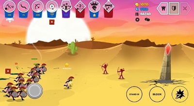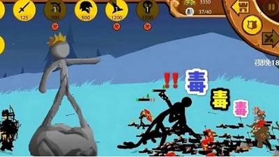 1、游戏中玩家可以亲临激烈刺激的战场,指挥你的火柴人勇士进行作战,而且游戏中有着各种火柴人士兵可供训练。