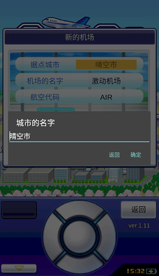 2、创建存档时,我们可以为自己的城市、机场各起一个名称;