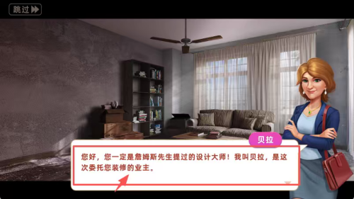 2、看金发女士贝拉对话,点左上角黑色跳过按钮跳过开场剧情介绍。
