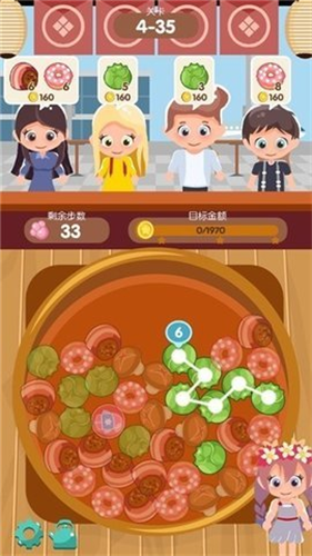 4、玩家需要不断满足进店顾客的美食需求,赚取更多的金钱,从而升级自己火锅店的道具,扩大火锅店的店面。
