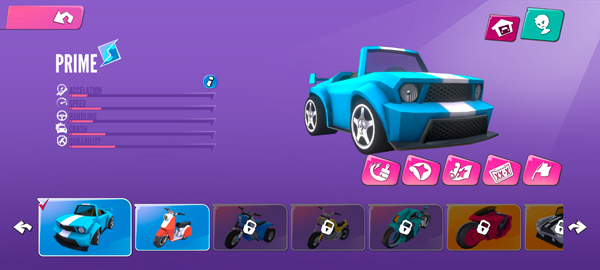 5、驾驶灵感源自真实汽车和科幻两轮车的全新座驾,您可以通过游戏奖励解锁,或在商店购买。