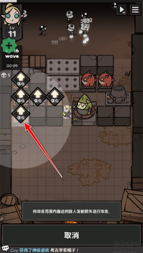 3、积累足够经验后,可选择增设防御塔或强化增益效果,战胜首领单位后,将获得特殊奖励。