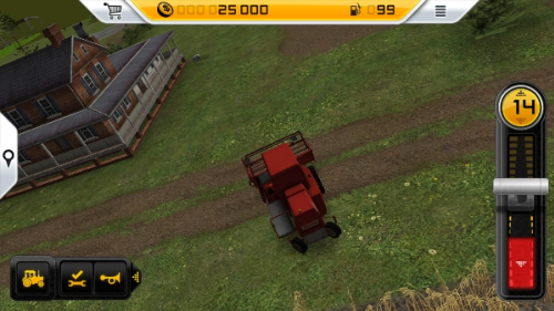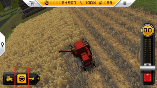 4、点击左下角的圆盘可让收割机直线行驶开,请开始你的收割之旅吧。