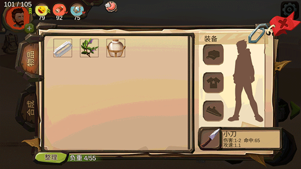 3、晚上睡觉和制作东西,心情保持在90以上,这样战斗之后能够快速恢复血量