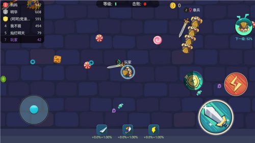 3、吃糖果补充能量,为你获得更高的经验值,可以不断升级自己的人物,获得超强的战斗经验,玩家们点击闪电按钮快速前进,可以吃更多的糖果。