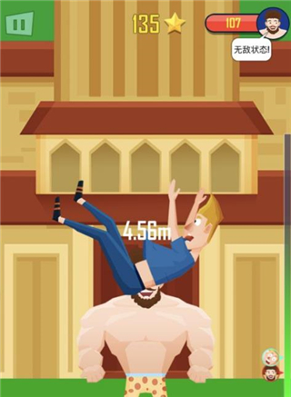 3、随着游戏进行,玩家的力量会不断增强,抛出的角色会越来越高、越来越远。