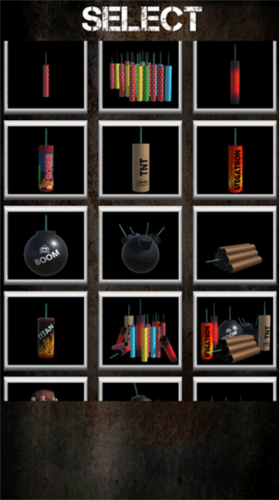 1、在本站下载安装点击打开进入游戏,不用注册不用登陆,不用看一秒钟广告!进游戏就选择你想放的烟花爆竹,或者炸弹。