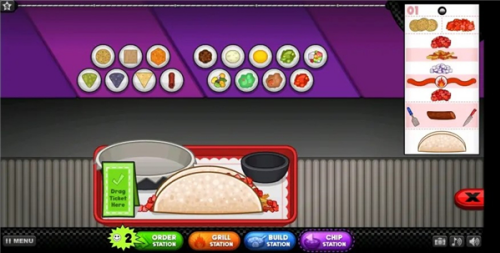 3、塔可店每个制作站需手动操作,需在不同站点间协调完成订单。