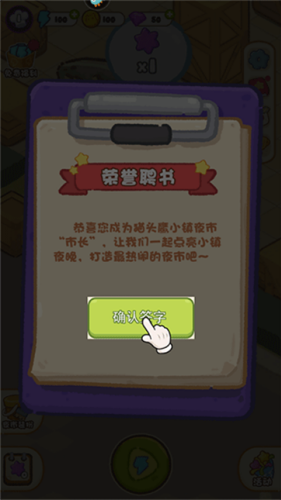 1、打开游戏,签约成为猫头鹰小镇夜市的市长。