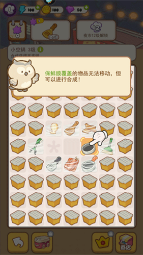 3、保鲜膜覆盖的物品无法移动,但是可以合成。