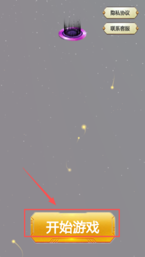 1、在游戏开始界面,先查看隐私协议和客服信息,然后点击底部的金色开始游戏按钮进入。