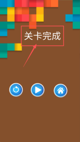 3、当屏幕显示关卡完成时,可以选择刷新重玩、继续下一关或返回主页三个选项进行后续操作。