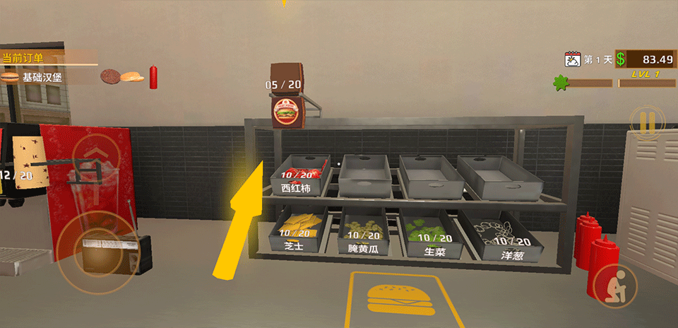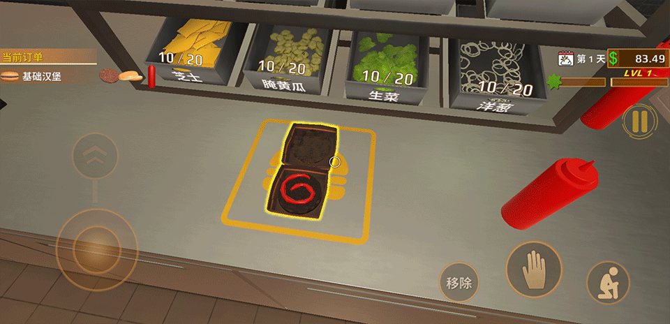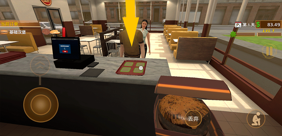 7、最后,将完成的汉堡装盘端到顾客面前,即可完成当前订单。收下顾客的满意笑容后,就能继续接待下一位食客啦。