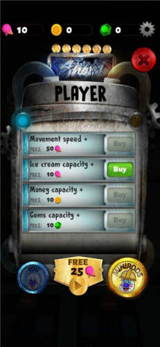 6、同时还可以增加自己的移动速度、冰淇淋容量、钱能力等,帮助玩家更好的进行建设,然后出去,除此之外,游戏中还有很多玩法等着玩家们自行下载体验。