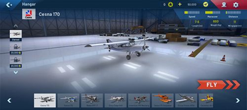 2、飞机的类型多种多样,可以逐步解锁,将更多的飞行挑战完成。