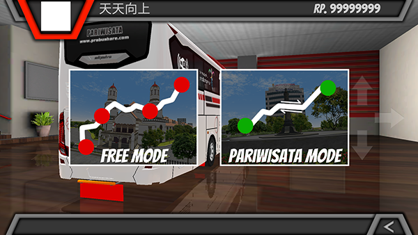 4、选择游戏模式,左边红色点的是自由模式(无法接载乘客),右边绿色点的是任务模式(需要根据路线去接乘客上车送到指定地点)。