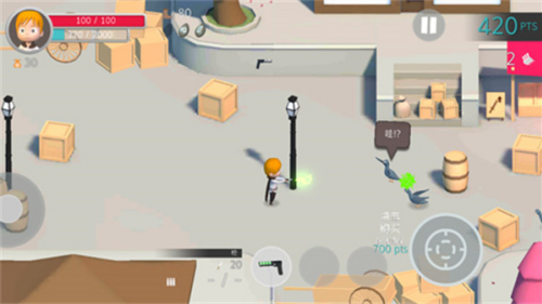 3、精致卡通的场景以及超清的画质,在不断地战斗中获得金币和资源道具,不断拾取提升你的攻击力轻松消灭鸽子哦。