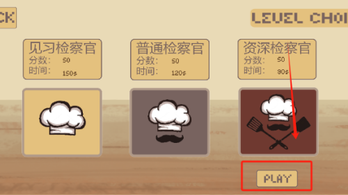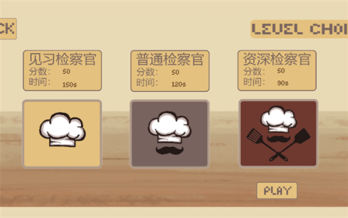 1、作为检察官,随意的查看各种不同的美食,所有美食都需要符合卫生标准。