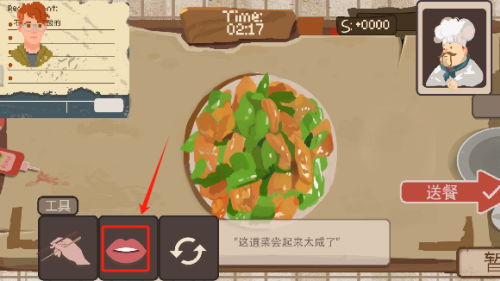 2、提供多种交互方式,如选择食材、品尝调料等,这些都是评价美食的重要工具与玩法,明智地使用它们来发现问题。