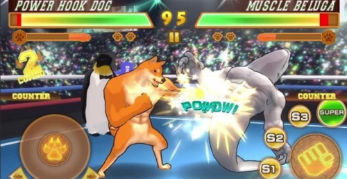 1、在本站下载安装点击打开进入游戏,这是1v1 趣味格斗游戏,例如右勾拳柴犬、身体躲在地下很强壮的狐狸、宛如站着行走的步行猫、施展魔法的松鼠、乌鸦猩猩、秀肌肉的白鲸等,只需要按下方向和技能键就能轻松使出连招。