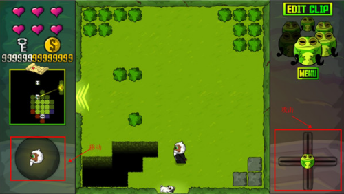 2、屏幕左边光标可操控角色进行移动,点击屏幕右边图标进行攻击。