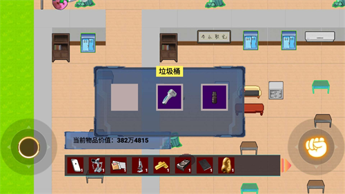 3、部分区域存在巡逻老师、校园恶霸等敌人,玩家需通过潜行、躲避或利用环境道具,如灭火器应对。