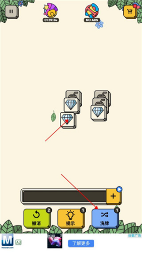 3、点击洗牌,牌库会直接点亮一组相同的卡牌。