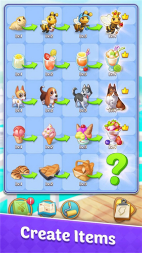 1、游戏结合了合成元素和经营玩法,通过多样化的休闲元素打造更加趣味的游戏玩法。