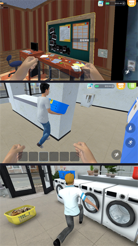 2、游戏采用3D引擎打造,玩家可以自由旋转视角,全方位观察和管理自己的洗衣店,体验真实的经营过程。