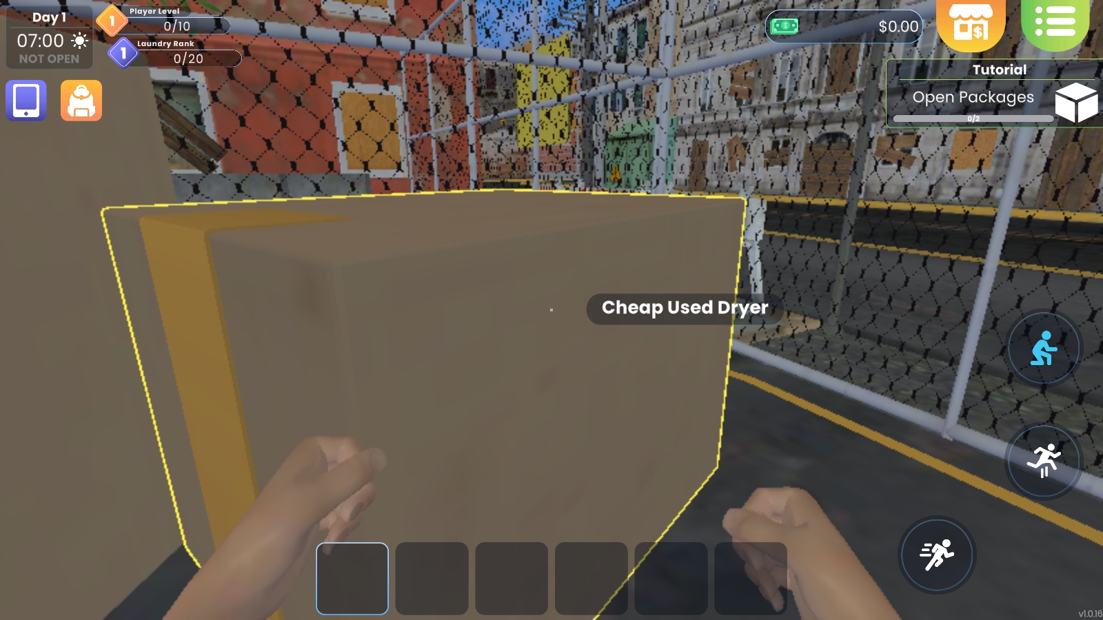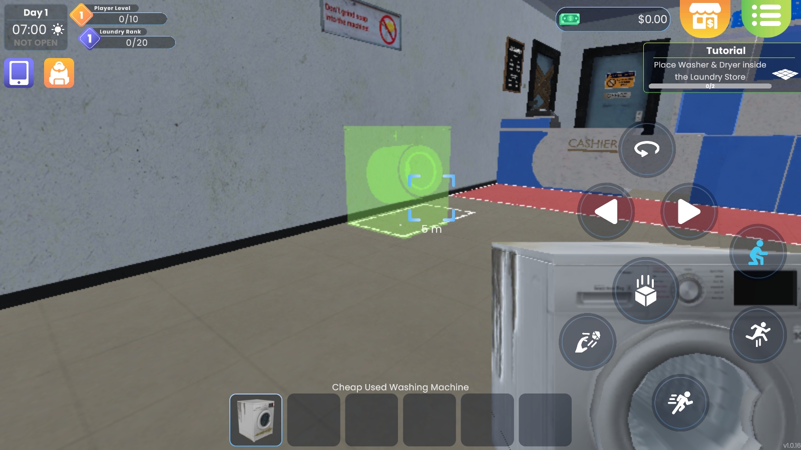 1、开局会赠送一个小型的洗衣机和烘干机,放置好之后就可以开始营业了。