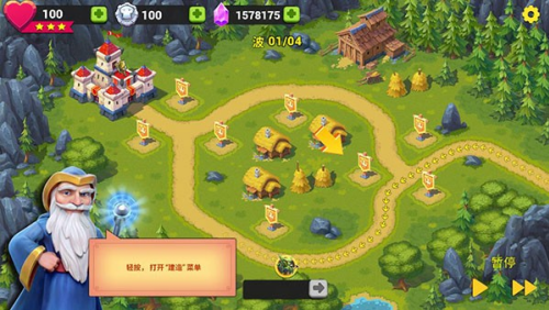 3、使用道具武器升级所有士兵,通过魔法战争将村子打造成王国,打造更强悍的塔防联军。