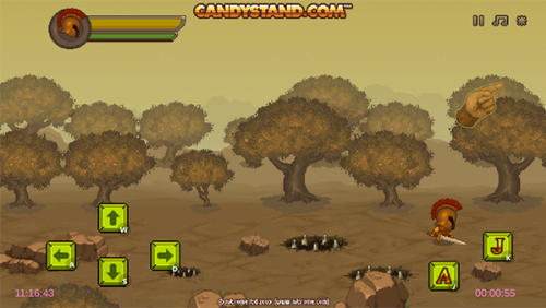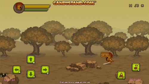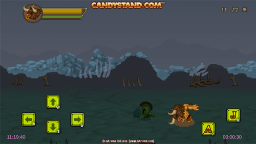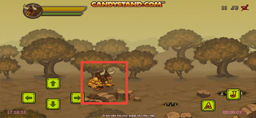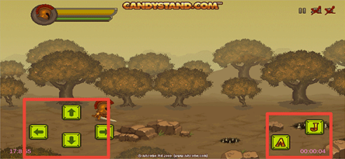 2、进入游戏后,左边上下左右按钮操控角色的移动,右边A为攻击,J为跳跃。