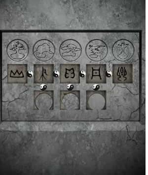 10、进入正屋取出盆栽,带至假山前放置,根据线索移动位置获取八卦盘,将其放进棺材的凹槽中。