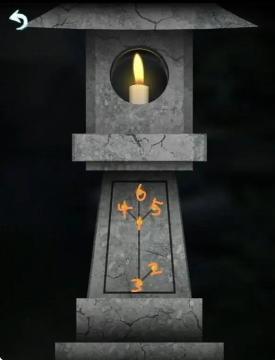 11、回到院子,点燃石灯,按照灯光亮起的顺序在正屋输入对应密码,获得灯笼。