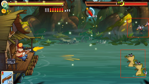 4、使用武器来攻击迎面而来的鳄鱼和蚊子,注意蚊子是会远程攻击的。