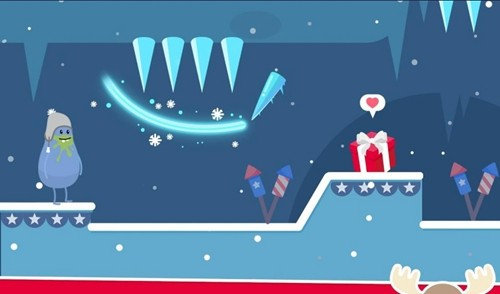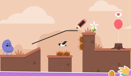 2、在该地方画一个坡道,然后让豆子前进去拿取气球。