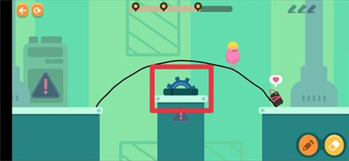 1、在本站下载安装点击进入游戏,进入关卡中在红色按钮上面画一条线,开关触碰门打开,豆子前进去拿取气球。