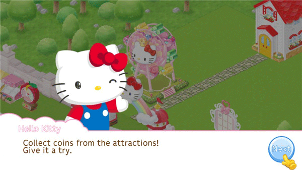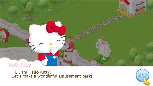 4、跟凯蒂猫一起来建造一个精彩的游乐园吧,点击下一步继续。