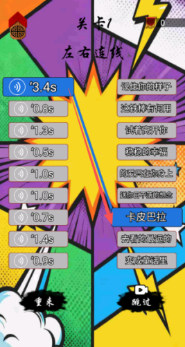 2、在连线的关卡中,我们需要听左边的音乐,去跟右侧的文字相连线。